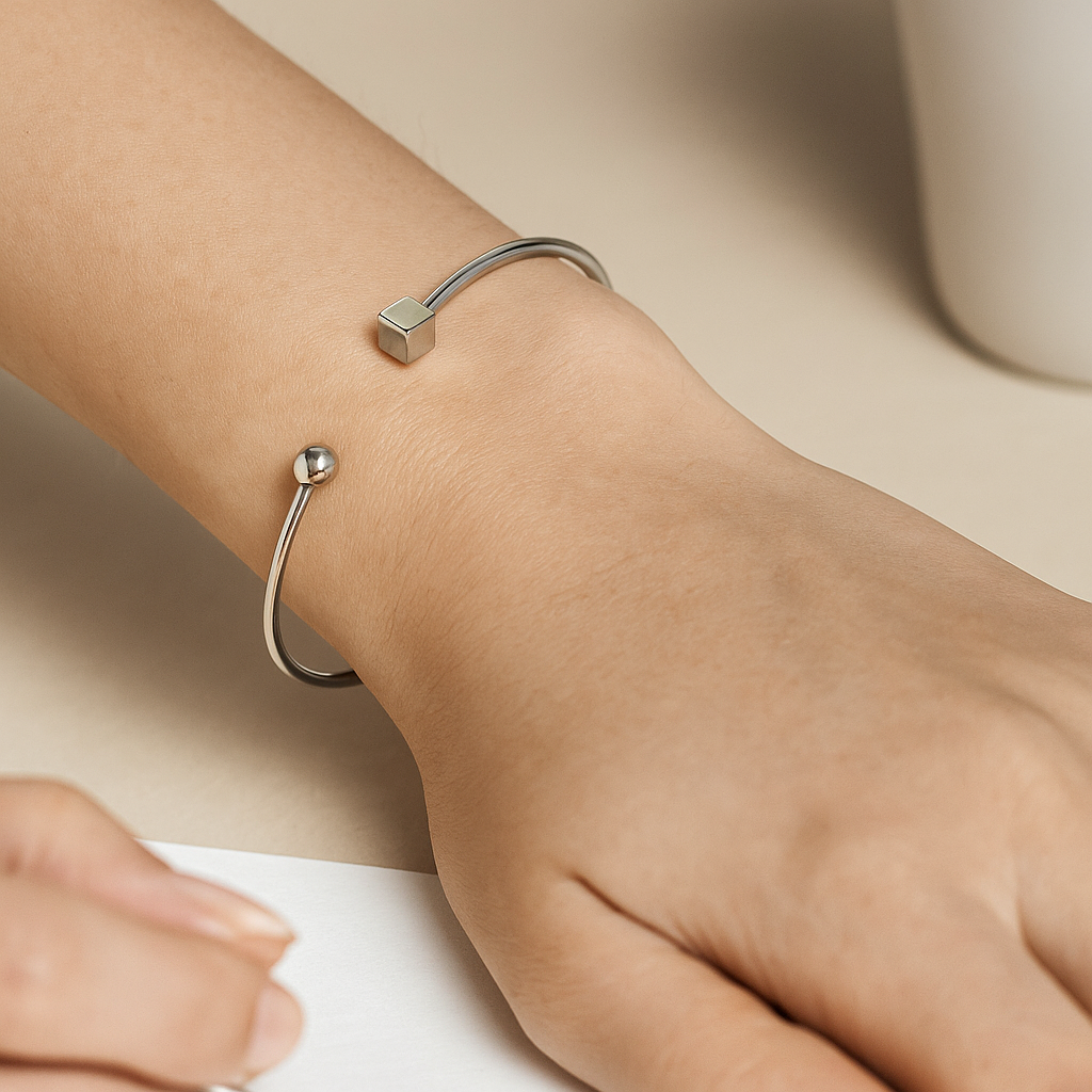 خرید دستبند زنانه بنگل مدل گوی و تاس از جنس استیل